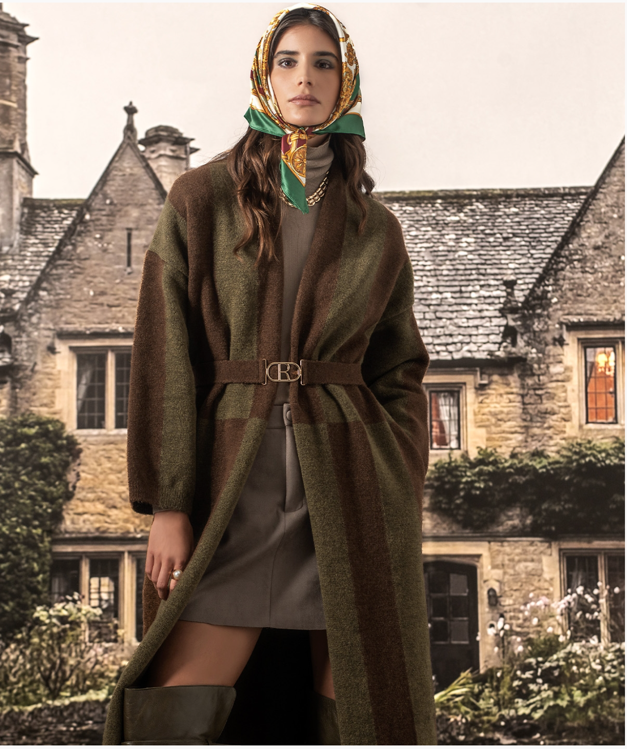 Two-tone long cardigan with removable belt and side pockets.